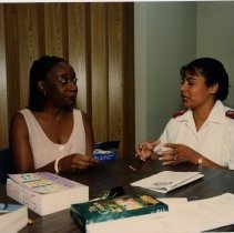 A 4x6 photograph depicting an officer counseling a woman, presumably at the LA Safe Harbor.