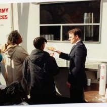 A 4x6 photograph of a cadet serving pizza as part of Emergency Disaster Services following the 1994 Northridge earthquake.