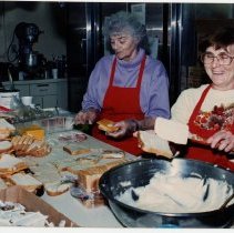 A 4x6 photograph of a group of volunteers making sandwiches as part of Emergency Disaster Services following the 1994 Northridge earthquake.